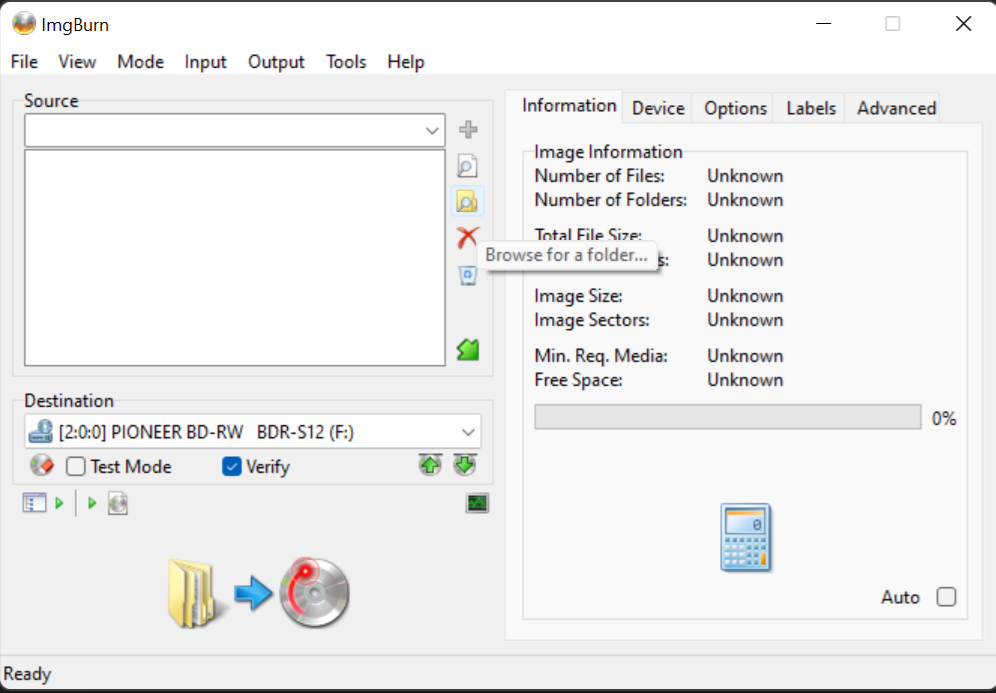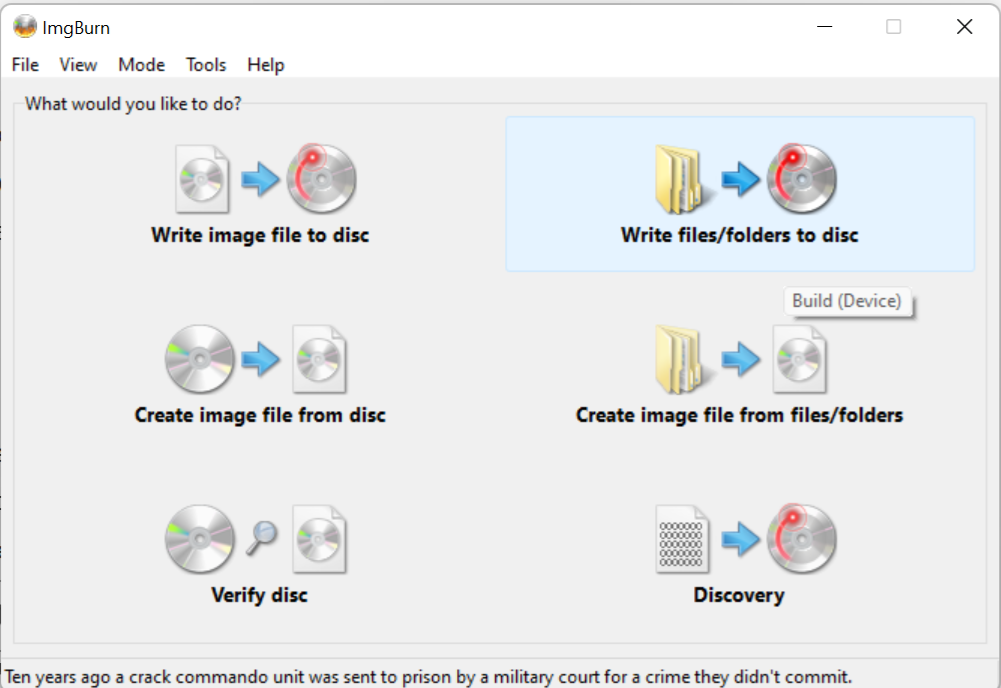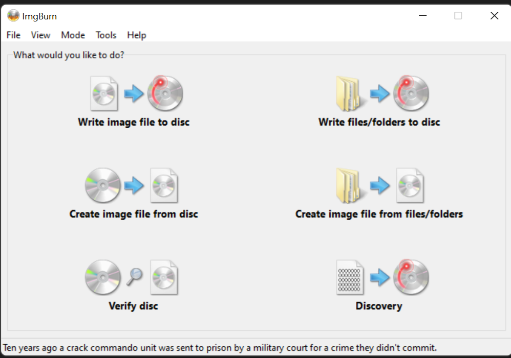 Step 1: Launch ImgBurn to the start screen.
